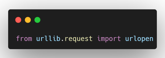 위 코드는 인터넷 상 데이터에 접근하는 기능을 불러온다. 특히 urlopen 함수를 사용하며 흔히 링크를 복사하면 나오는 url에 있는 콘텐츠에 접근할 수 있다.