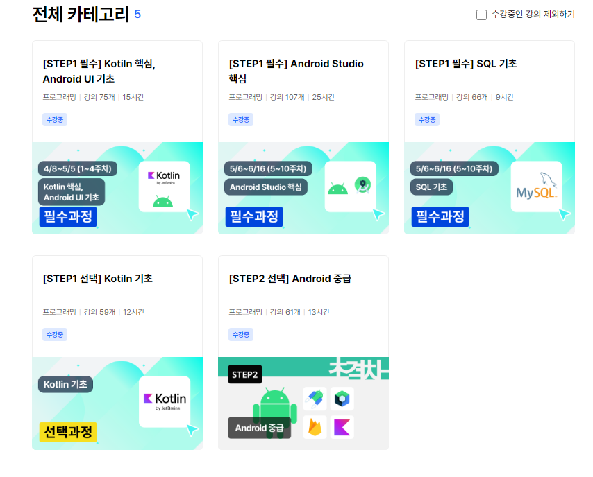 강의는 Fast campus 에서 들었으며, 나는 Android 트랙이었기 때문에, Kotlin과 Android에 대한 강의를 들었었다.