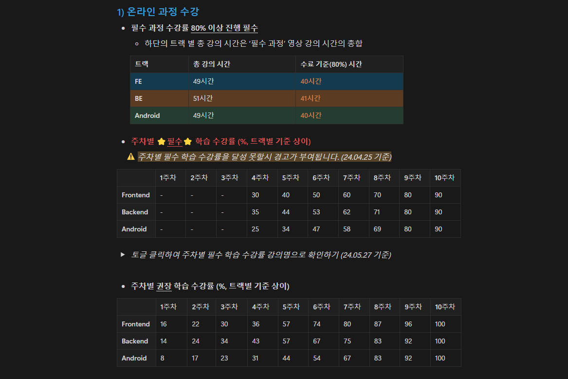 - 매주차 정해진 분량만큼의 온라인 영상을 수강