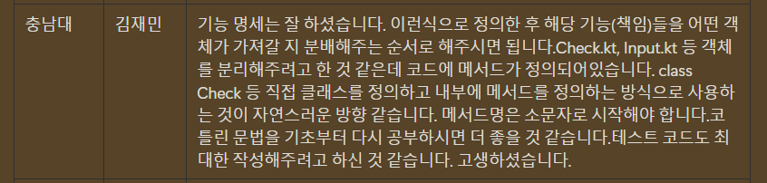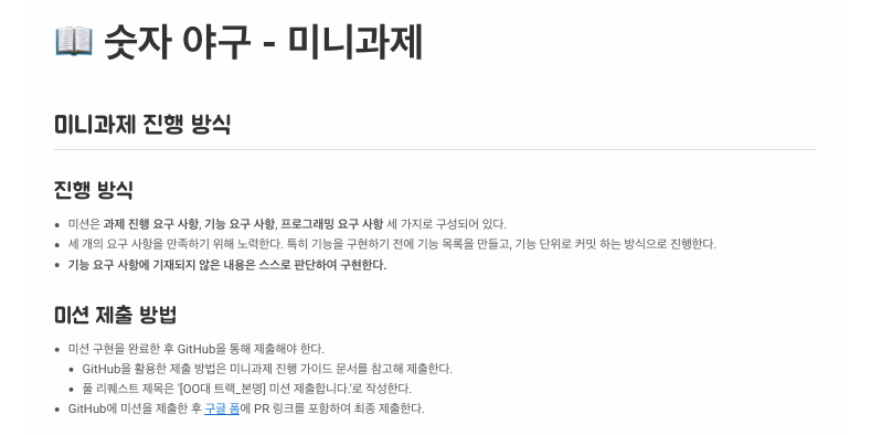 숫자 야구를 진행하는 방식부터 github를 통해 어떻게 제출하는지 까지 세세하게 알려주어 github와 조금 더 친해지는데 도움이 되었다. 이렇게 과제를 진행한 후 제출하면 멘토님께서 피드백을 해주시는데