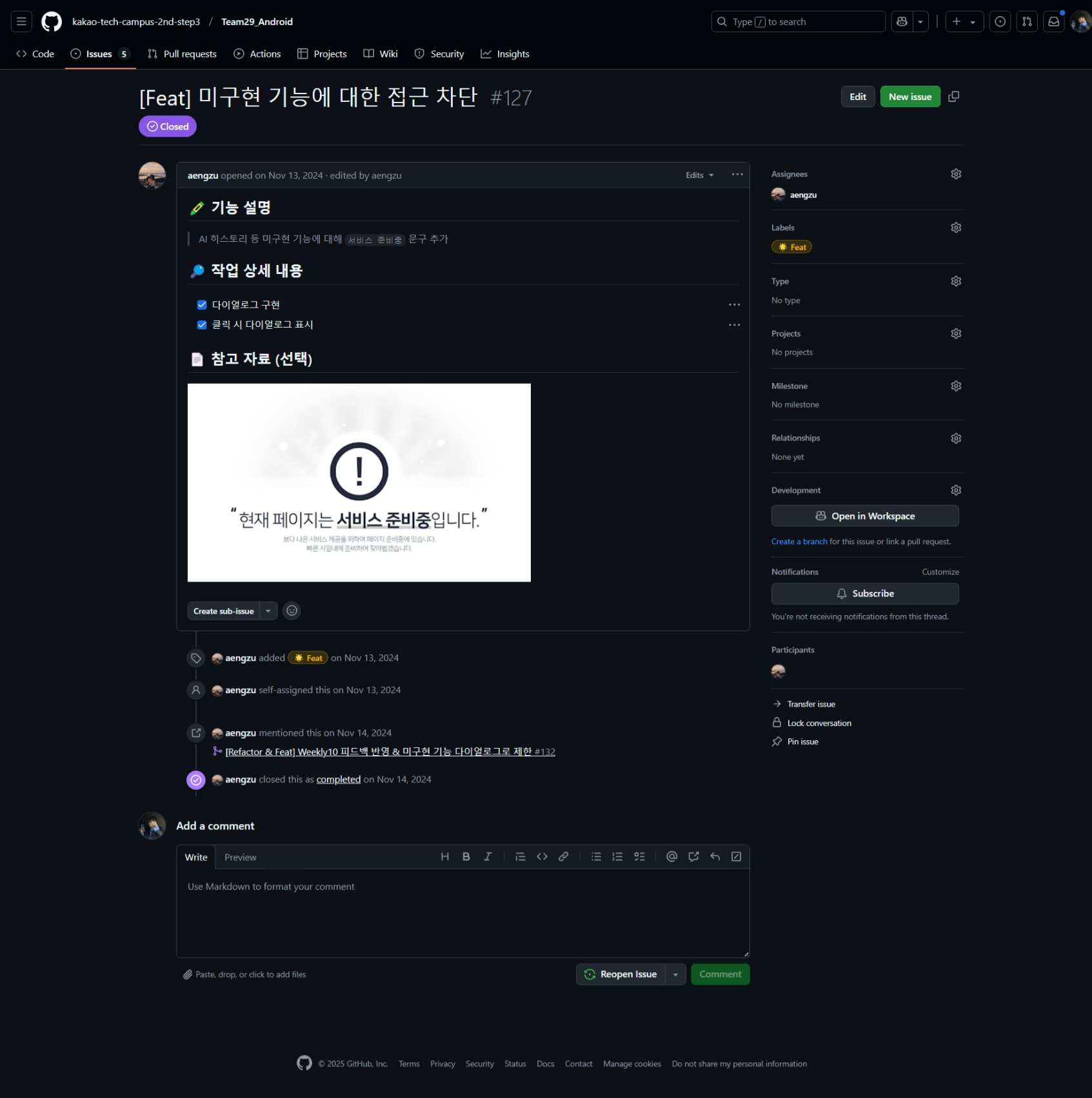 2명일수록 더욱 체계적으로 진행해야 한다 생각하여, Issue도 체계적으로 구성하였고, 처음 프로젝트에 참여하는 사람이 보더라도 이해하기 쉽게 작성하였다.