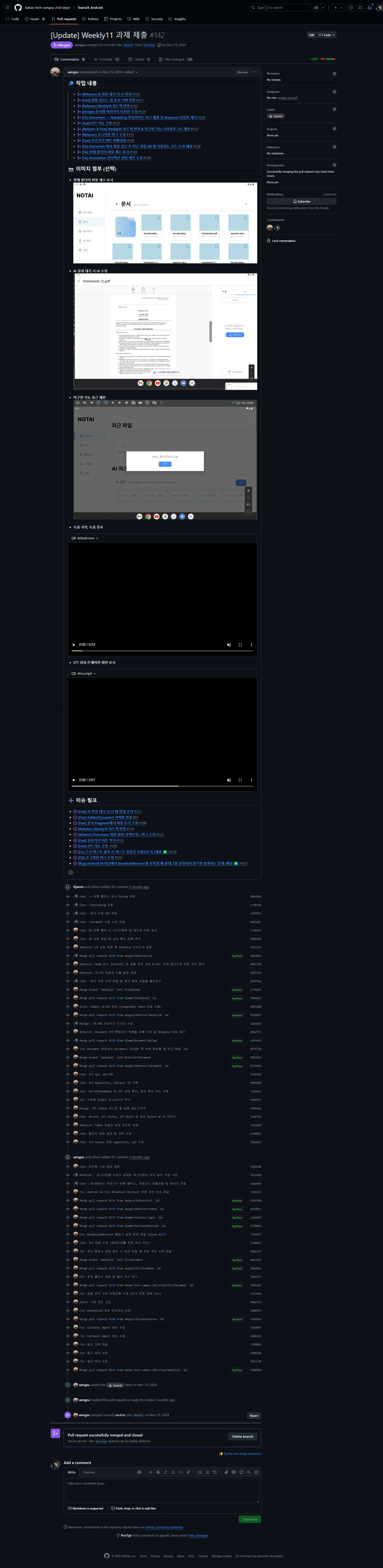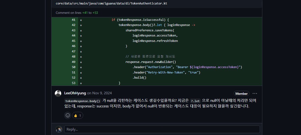 이렇게 pr을 날리면 현직 멘토 분께서 세세히 코드 리뷰를 달아주시는데 정말 도움이 많이 되었다. 지금 코드에서 부족한 점과 현재 기술 구현이 어려운 점들을 알려주셔서 든든했다.